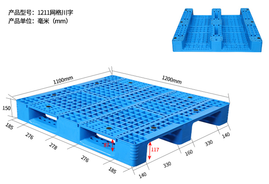 | 1211網格川字托盤 | 1200*1100*150 | 13 | 1.5T | 5T | 8 |