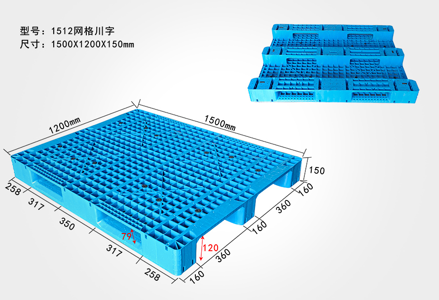 | 1512網格川字托盤 | 1500*1200*150 | 18.5 | 2T | 6T | 12 |